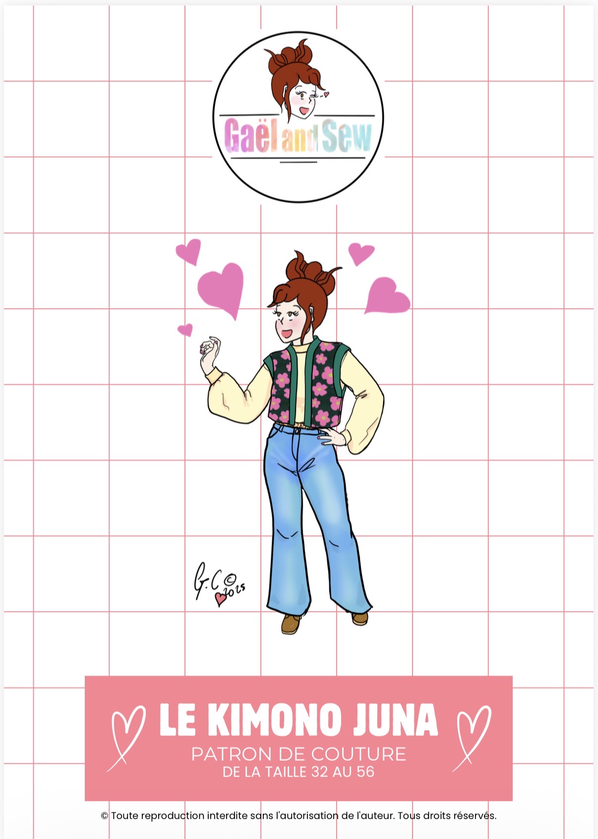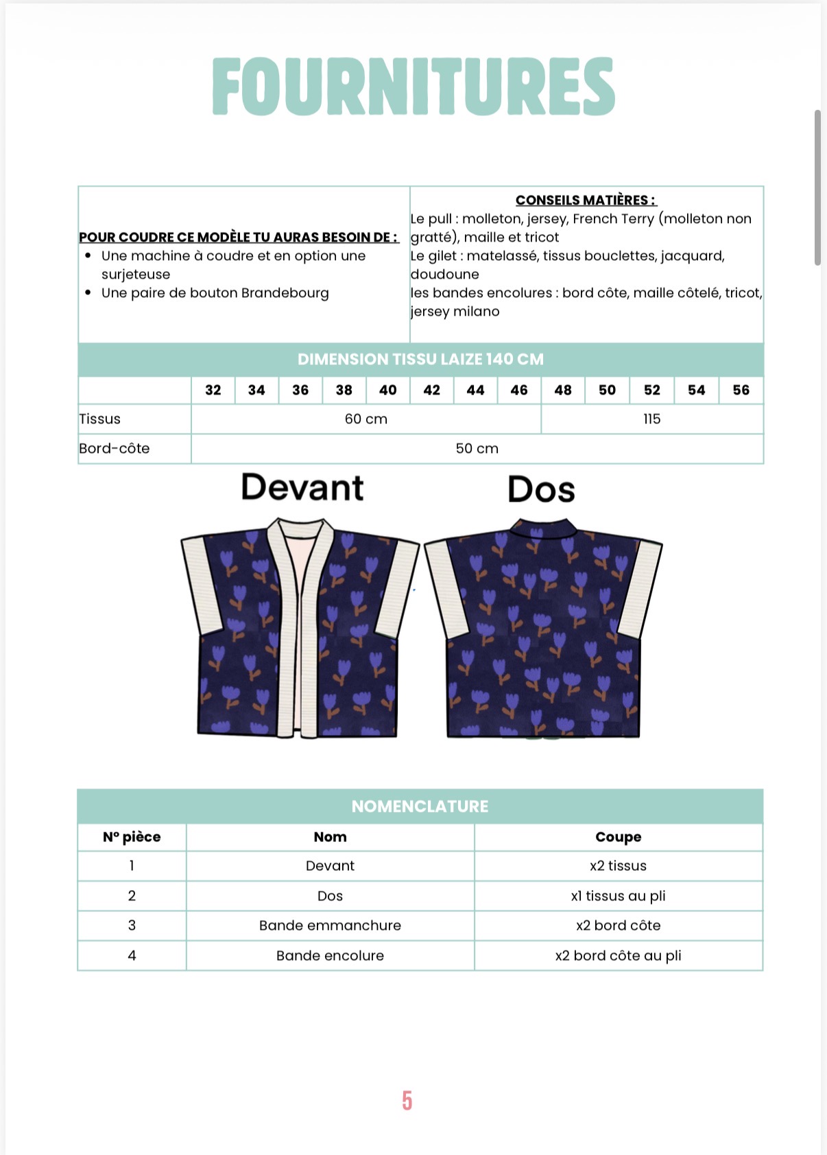 - Le patron PDF (les marges de couture sont comprises) au format A0 + A4 (il suffit d’imprimer et de coller les pages afin de constituer son patron.