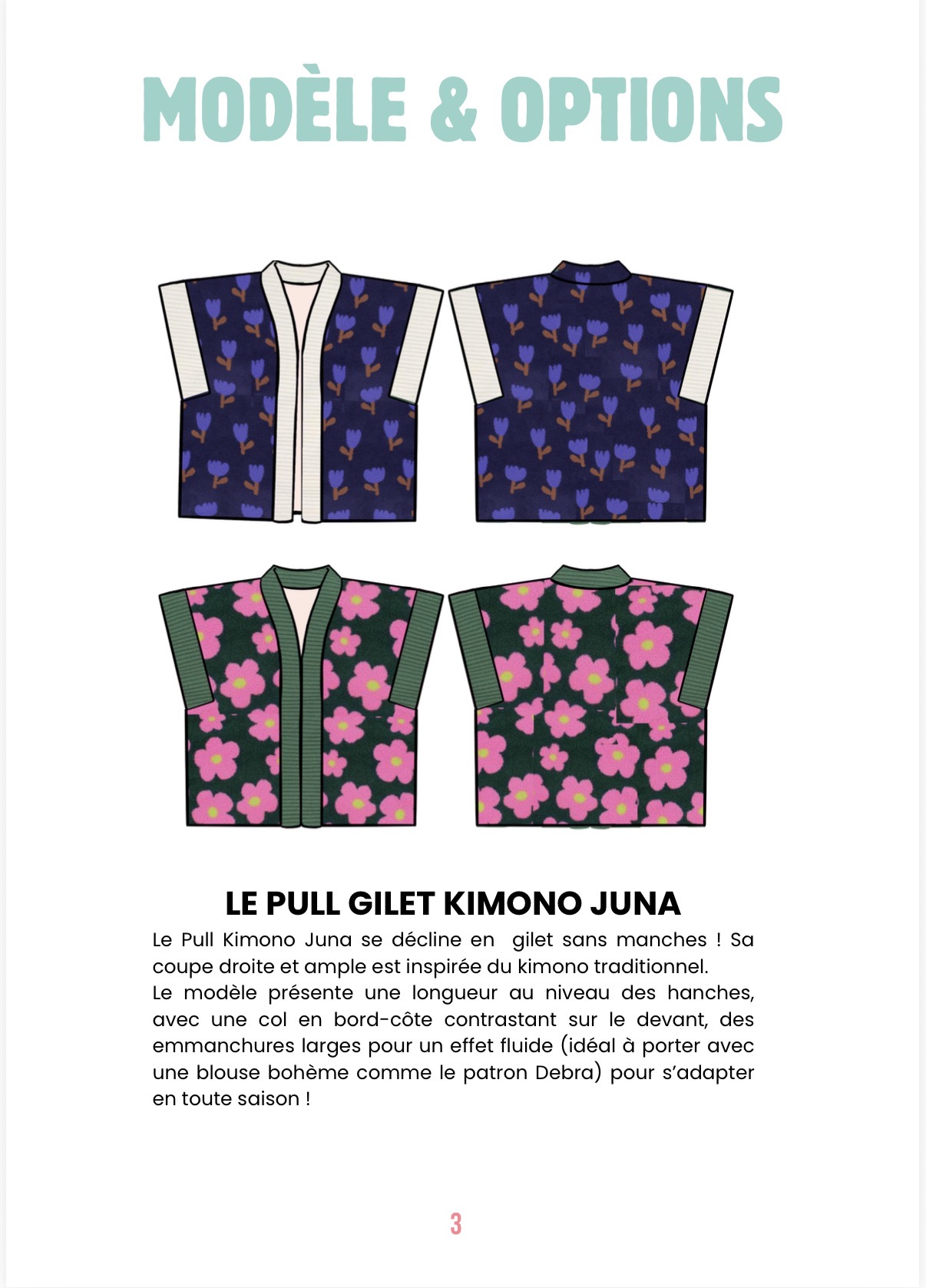 Descriptif du patron pull gilet Kimono JINA :