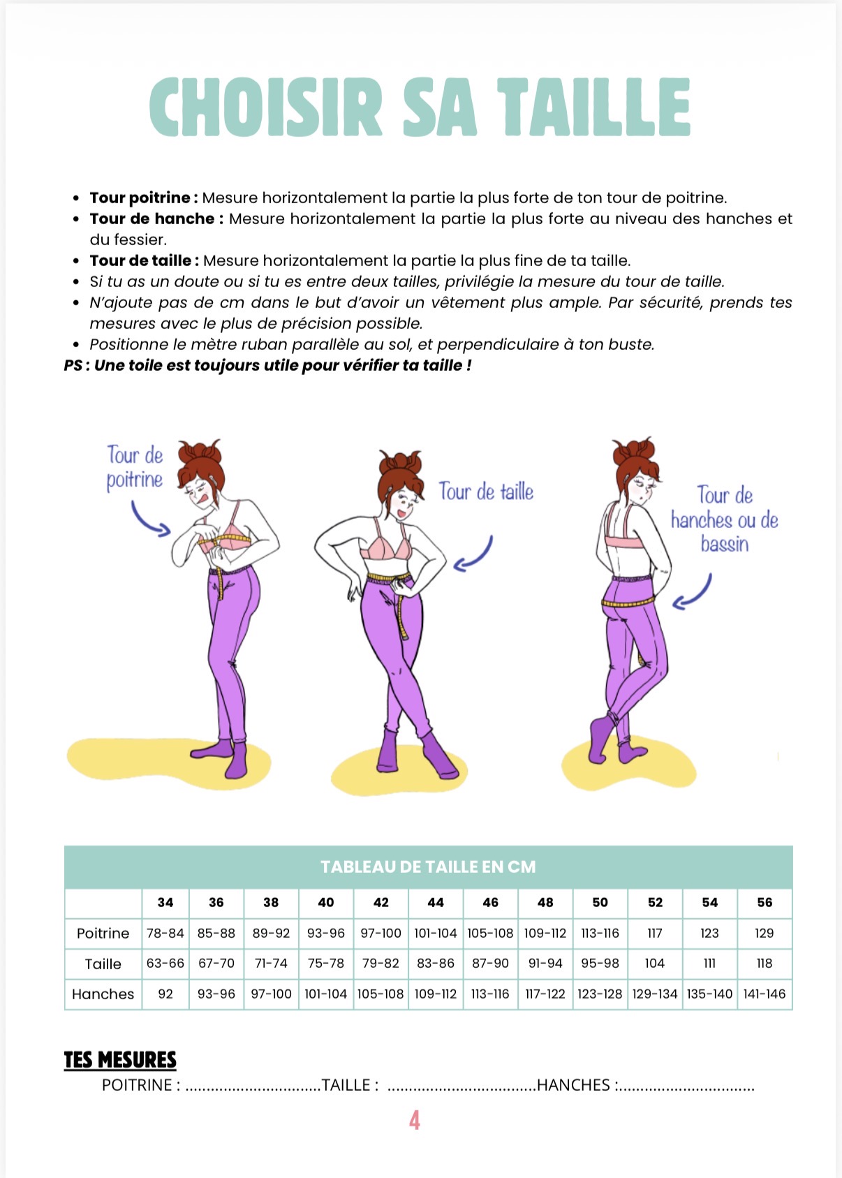 * Si tu as un doute ou si es entre deux tailles, privilégie la mesure du tour poitrine