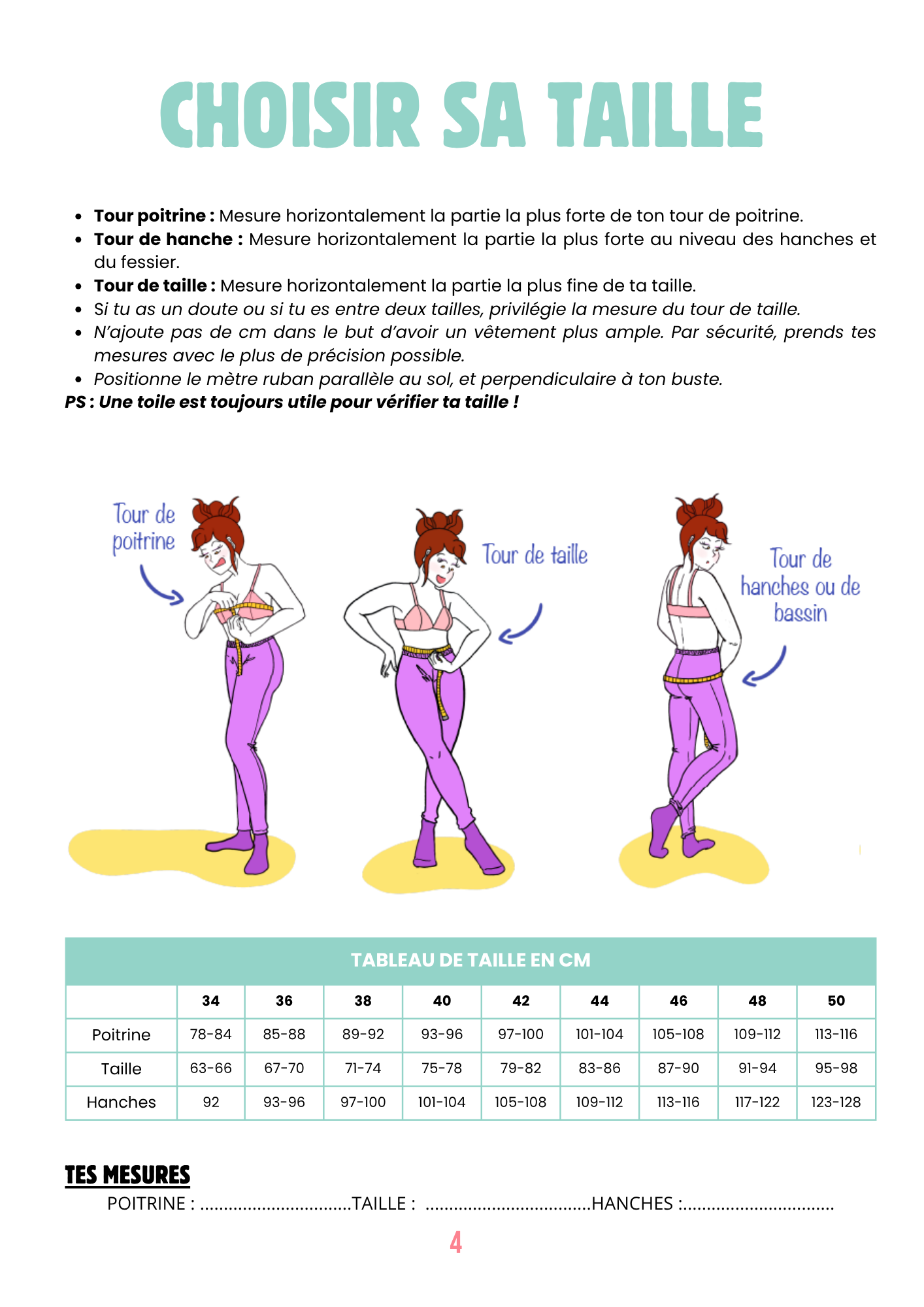 * Si tu as un doute ou si es entre deux tailles, privilégie la mesure du tour de taille