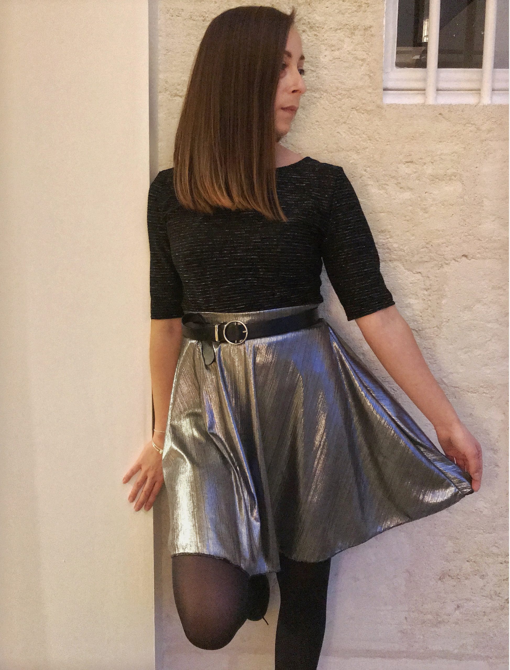 Jersey ou tissu avec minimum 8% d’élasthanne en laize de 150 cm (privilégier un tissu qui ne s’effiloche pas sinon il faudra faire des ourlets au manches et bas de jupe !)