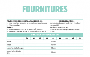 - Le patron PDF (les marges de couture sont comprises) au format A0 + A4 (il suffit d’imprimer et de coller les pages afin de constituer son patron.